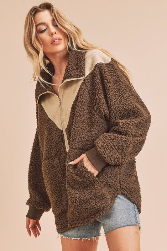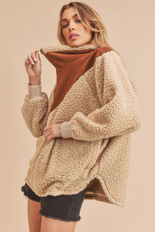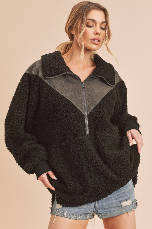 Whether it be for warming up or throwing on post workout, the Aspen Pullover features a classic over-sized quarter-zip silhouette with bicolor fabrication and for a cozy yet trendy look.