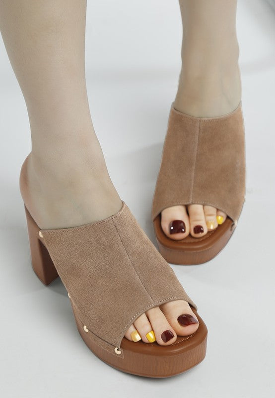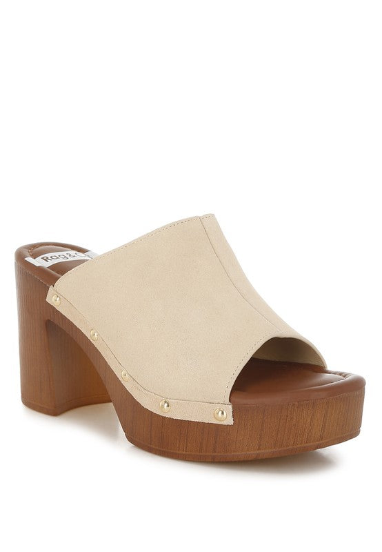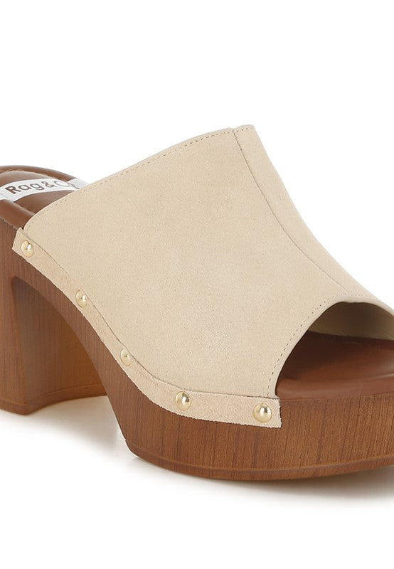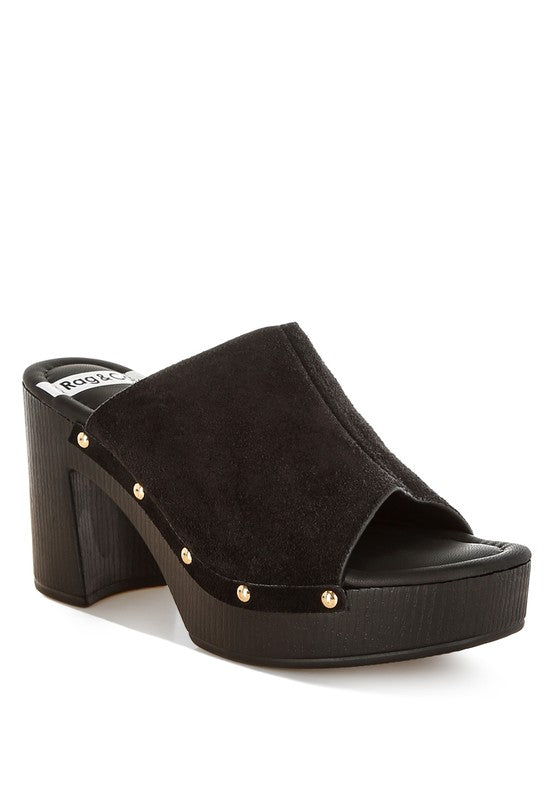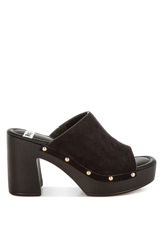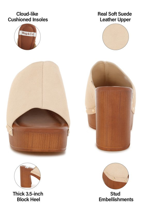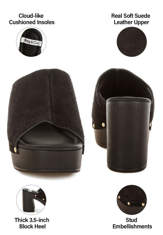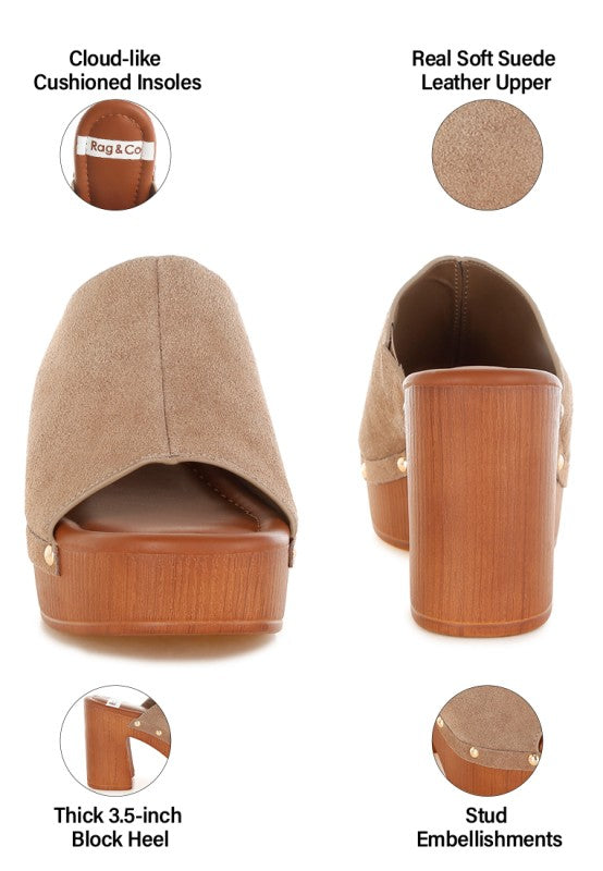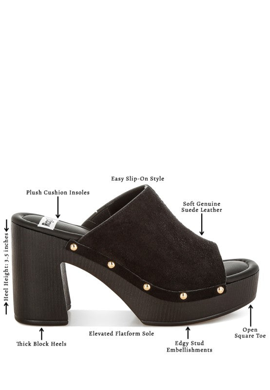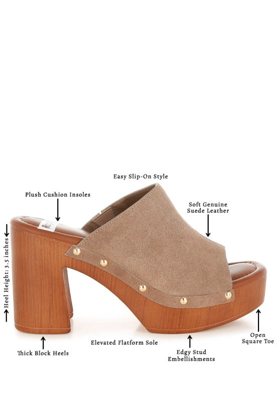 These minimalist real suede leather clogs are designed with stacked block heels and premium cushioned insoles, ensuring a walk as comfortable as it is stylish. With stud-embellished details, they're the perfect slip-ons with 3.5 inch heel height.
